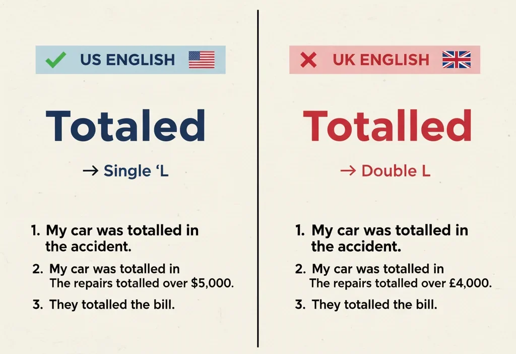 | Spelling | Double L (totalled) | Single L (totaled) |